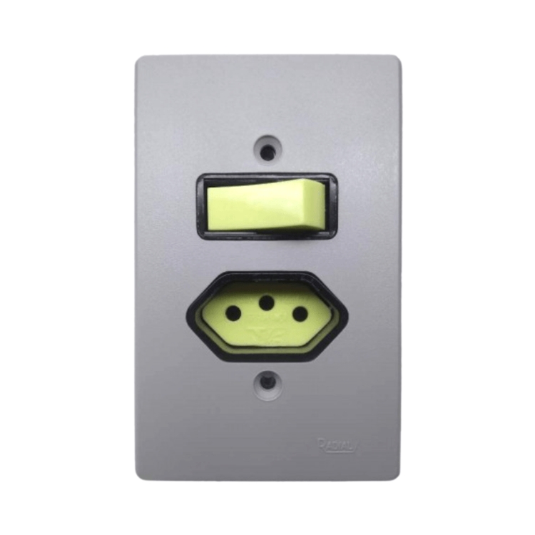 Interruptor 1 Tecla Simples + 1 Tomada 2P+T 10A Horizontal Cinza prata #Radial #10278